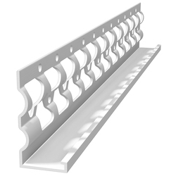 The larger triangular perforations in ClarkDietrich E-Flange allow more stucco mix to flow through the flange, providing more thorough and consistent embedment. In addition, the unique E-Flange shape allows for quick tying of lath and other accessories, making for easier installation.