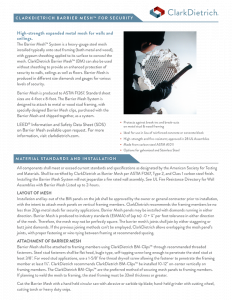 In addition to providing high-strength and fire-resistant protection, Barrier Mesh also offers a cost effective and time-saving alternative to reinforced concrete or concrete masonry systems. The Barrier Mesh System is designed to attach to metal or wood stud framing with specially designed Barrier Mesh™ clips, purchased with the Barrier Mesh and shipped together, as a system. ClarkDietrich mesh sheets are 4’x 8’ and sizes in chart below; special order mesh sizes available upon requests with additional lead-time.