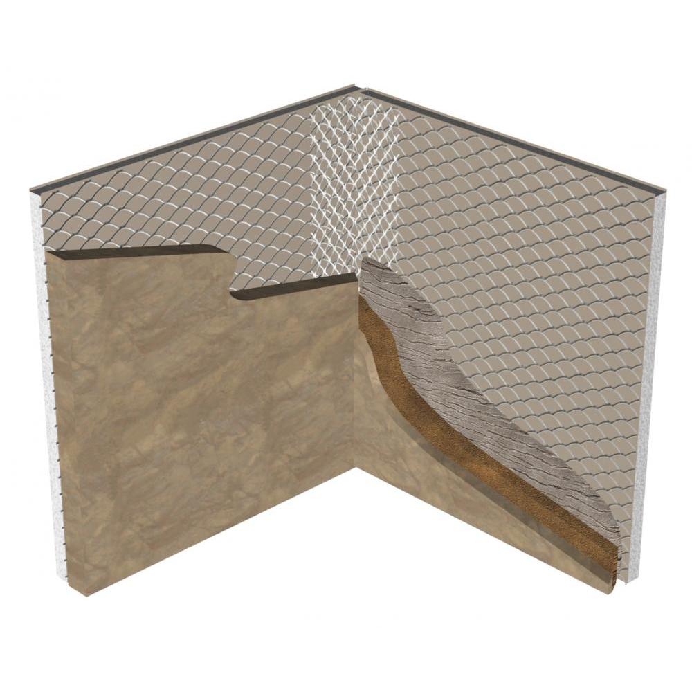 Cornerite reinforcing angle should be tied to the base lath using 18-gauge tie wire. It should not be attached directly to the support framing but allowed to float in the corner. Available in 2" x 2" (4' and 8' lengths), and 3" x 3" (8' length only).