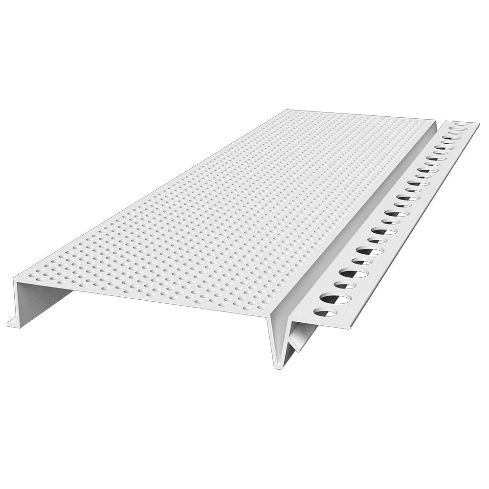 Designed to work on narrow overhangs where vents are needed to go against fascia or walls. Vent clips are provided to connect soffit vents and a perforated flange aids in embedment.
