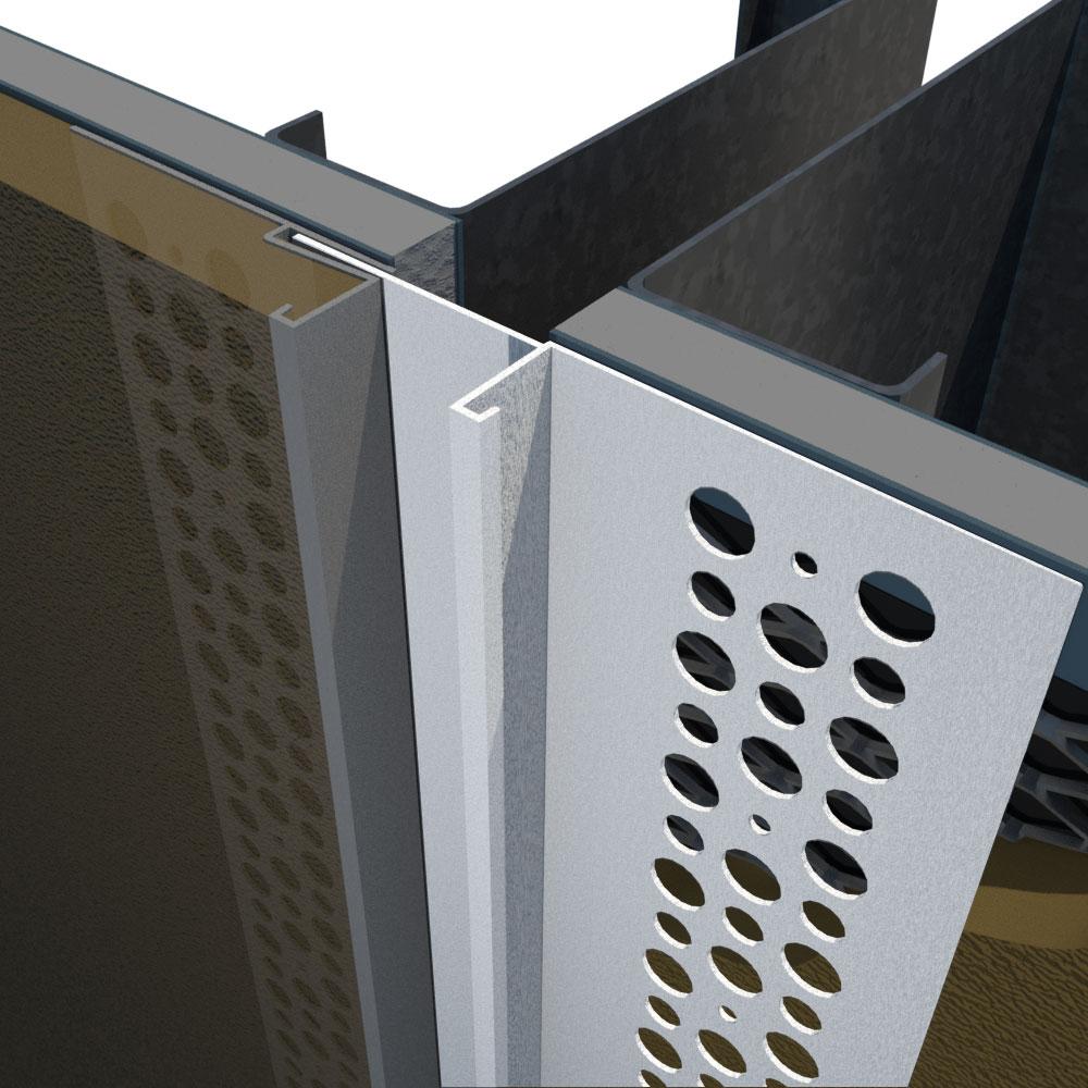 Wide male casing bead, used as a component expansion joints. May be used as a drip reveal or a slotted reveal, etc.