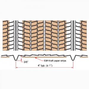 more rigid than diamond lath and helps to prevent Plaster loss3-3/16" wide strips of plain 50lb kraft paper spot attached with glue between the herringbone mesh pattern with seven, 3/8" deep longitudinal solid steel ribs spaced at 3-7/8" intervals…