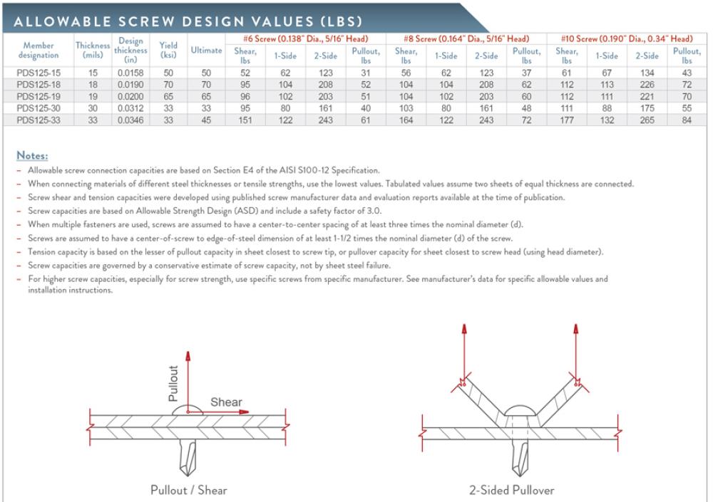 ProSTUD® Allowable screw design values (lb.)
