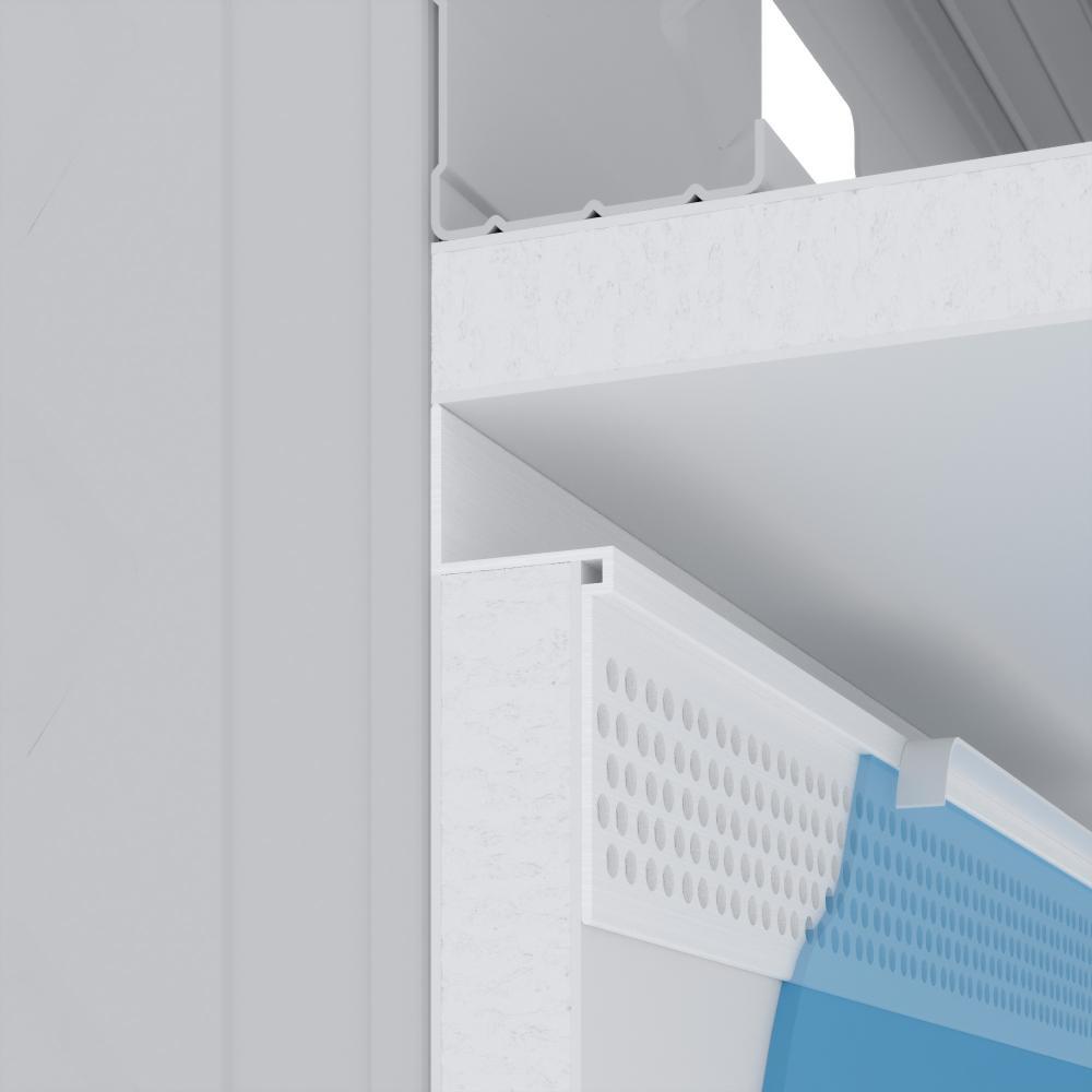 Creates edge reveal when butting up to ceilings, base trim and other finished interior components.