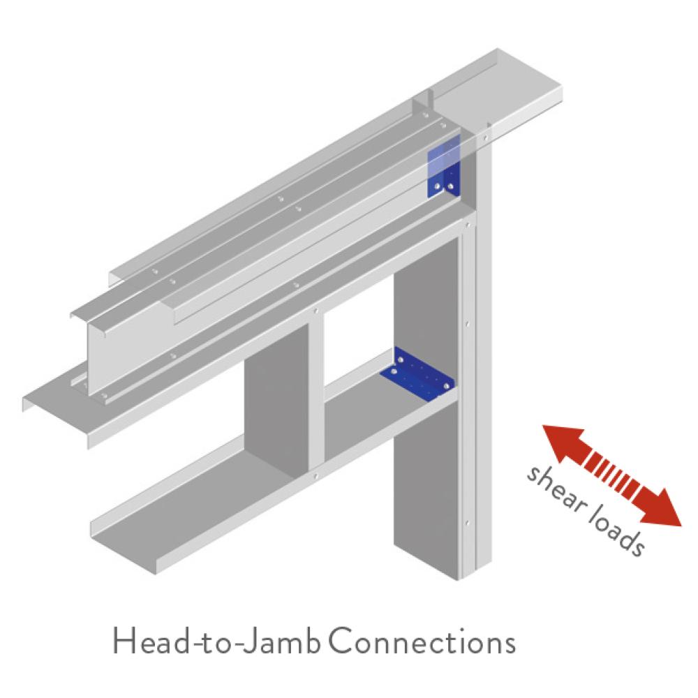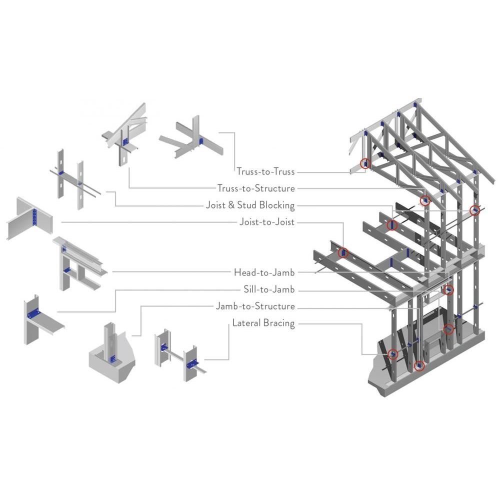 Pre-punched SwiftClips™ are used for multiple construction applications. They are commonly used for lateral bracing CRC connections, header & sill connections and floor joist hangers. The L-shaped clips fit between the stud flanges, so that shorter length clips do not need to be ordered.
